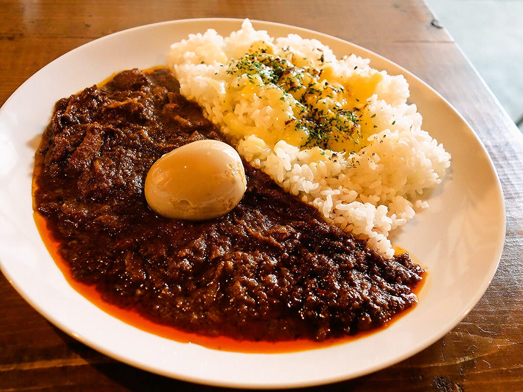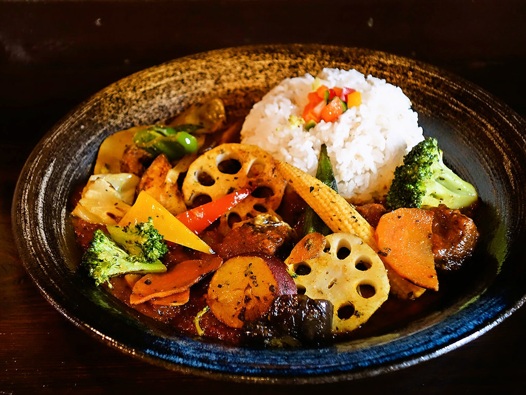 たっぷり肉汁のホエー豚ハンバーグスープカリー