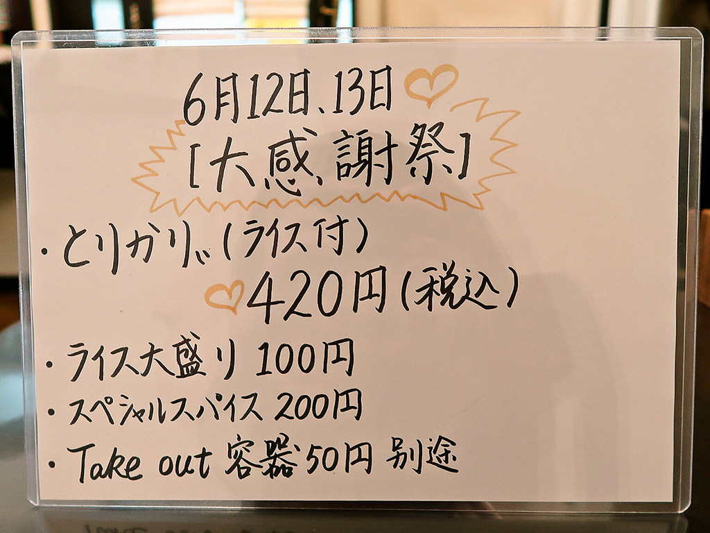 この日は大感謝祭ということで、スープカレー一杯420円で提供!