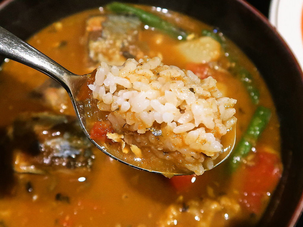 今回鯖缶カレーチョイスで、鯖の旨味スープに溶け込んだおかげか、いい感じに旨味の隙間うまる!!